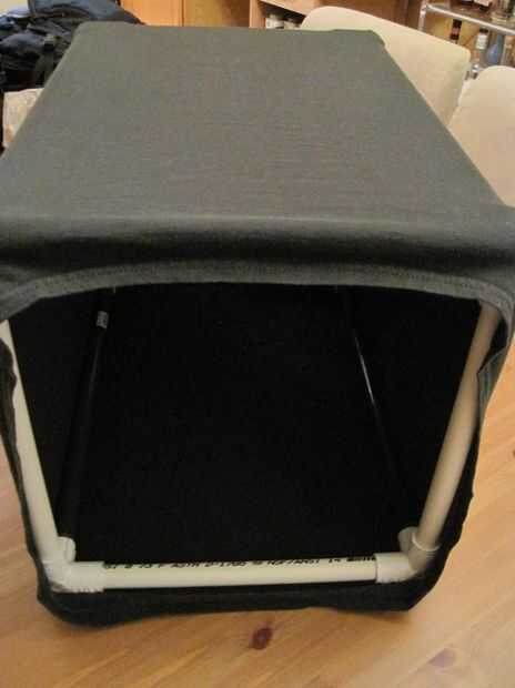 Usted puede dejar en este punto del perno de seguridad incluso el dobladillo alrededor del PVC para el retiro fácil de la camiseta. Decidí hacerlo un poco más permanente y utiliza algún hilo grueso a coser por el borde de la camisa y el tubo de PVC. Esto era esencial después de que mi gato decidió que la parte superior del condominio era un gran lugar para lugar de reunión así como el interior.