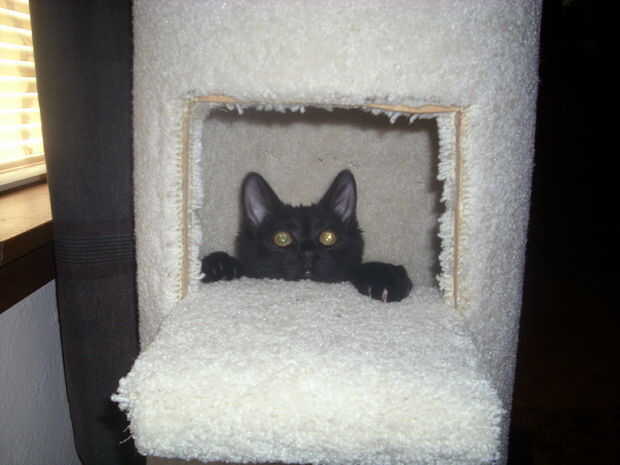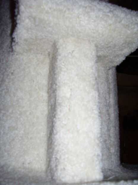Para añadir soporte adicional, es muy simple. Encontramos un pequeño bloque de madera y cortar a la longitud que debían llegar desde la base hasta el fondo de la plataforma. Hemos cubierto con alfombra en tres lados, utilizando la pistola de grapas para fijar a la madera. Luego nos empujaron en su lugar, directamente debajo del estante, y ponemos un tornillo en él desde la parte inferior, a través de la base. También ponemos los dos tornillos más en él, desde el interior del tubo, en el lado sin moqueta que es contra el tubo. Los tornillos se entierren en la alfombra y no son sensibles, por lo que realmente podemos hacer esto para todos los estantes.
