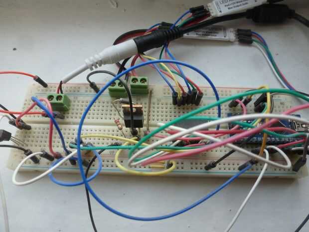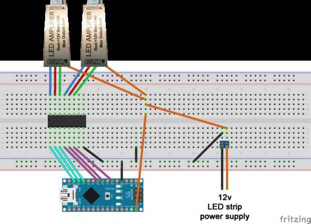Ahora, el amplificador está conectado a fuente de alimentación 12v. ¿No tiene ningún regulador de voltaje (para qué? Piensa que está conectado con otra tira de LED!), por lo tanto, estar conectado a un Arduino, motivos 12v en un pin del Arduino que se limita a 5v. Que es evidentemente malo, aunque Arduino puede sostener tal tratamiento (o no).
