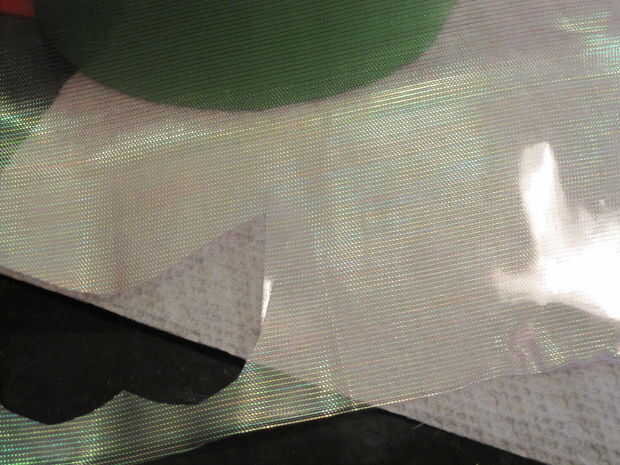 Para hacer las alas, emparedado un trozo de tela perlado entre dos trozos de cinta de embalaje transparente.  Cortar las alas en el mismo redil en método medio.
