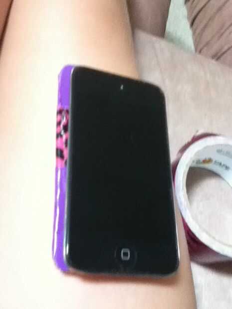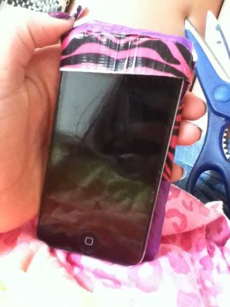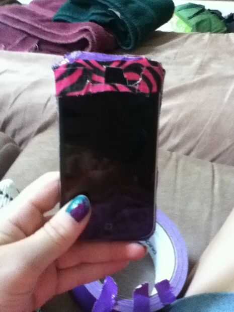 Poner la cartulina en su iPod y poner algunas cintas en la parte superior del conducto y conducto cinta adhesiva a la cartulina y luego corte un agujero para la cámara que en la parte posterior