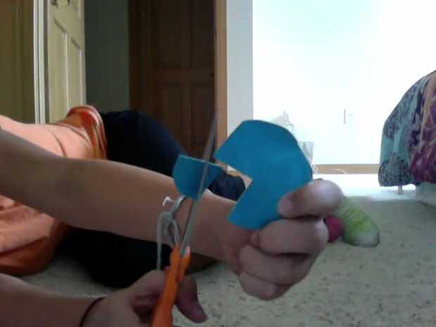 Ahora cortar la cinta de dos lados del conducto en un círculo. Después de recortar un triángulo para la boca