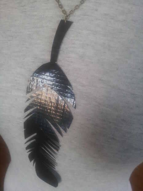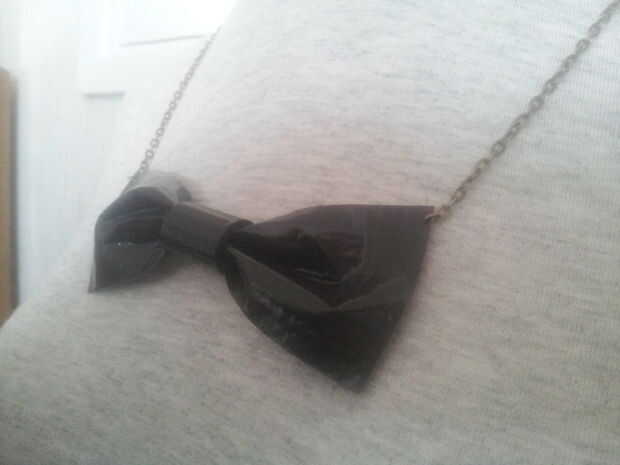 3. utilizando sus pinzas, coger un collar y quite el eslabón de cadena que normalmente se sentaba en el centro en la parte delantera del cuello, y cada uno abrir ambos lados del enlace que quitó. Simplemente perforar el arco en las esquinas superiores con el enlace y por último, utilizando las pinzas, cierre el enlace!