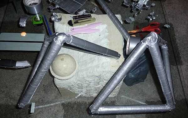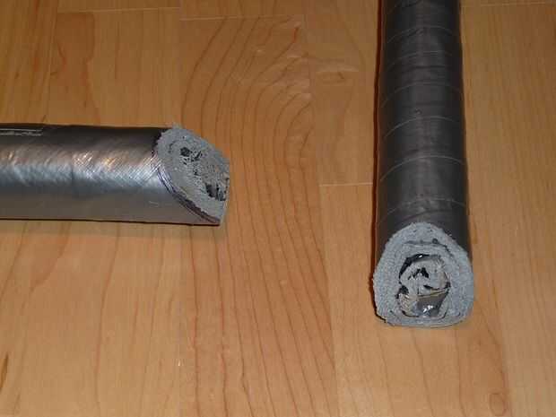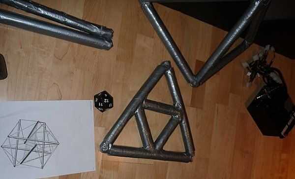 Como progresaron las cosas encontramos que nuestros tubos no eran todos exactamente la misma longitud, y que pequeñas diferencias sería empezar a sumar y distorsionar nuestra forma. Los primera pocos tubos fueron cortados a la longitud con un cuchillo, pero era muy difícil de cortar a través de casi una pulgada maciza de cinta. También nos dimos cuenta de que los tubos se vería mucho mejores si se inglete para encajar perfectamente en cada esquina.