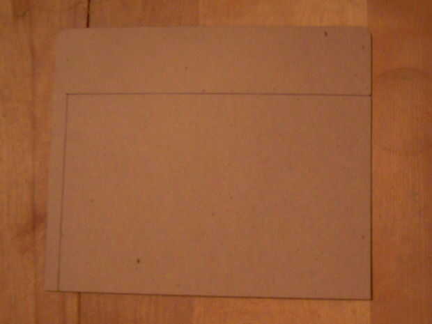 Eres "probablemente preguntándose cuál es la carpeta de. Si sientes que la parte delantera (o retroceder), notarás que es muy rígido. Esta parte dura es lo que será el marco principal. Para comenzar la abertura abierta de la carpeta con el cuchillo y la cáscara de nuevo el plástico. Una vez que el cartón hacia fuera, utilizar el plan de papel que hiciste anteriormente como una plantilla. Trazar el tamaño sobre la cartulina y utilice una regla y el cuchillo para cortar hacia abajo. Tendrá que ir aunque varias veces y tenga que presione tipo de duro, así que ten cuidado. Y ahí lo tienen. El centro de todo.