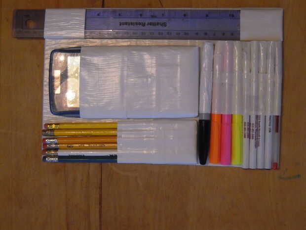 Realmente hice un bolsillo para las tijeras en este modelo ya no hay espacio suficiente. He hecho esto aunque en los últimos. Básicamente un bolsillo para el disco. Es simple de averiguar