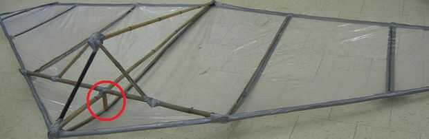 Paso 24: Paso 24: un refuerzo de bambú corto entre el centro y el listón del centro, sobre incluso con el larguero, le dará el ala una curva agradable
