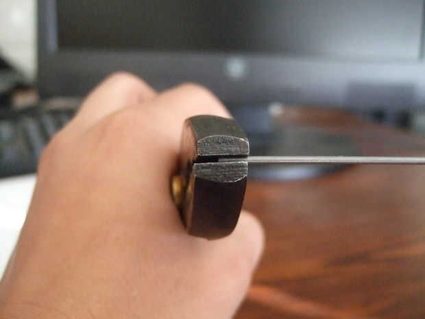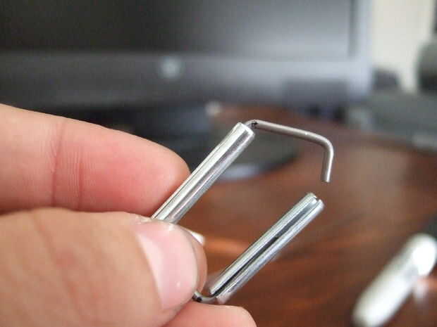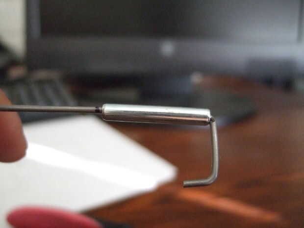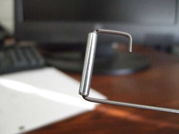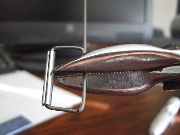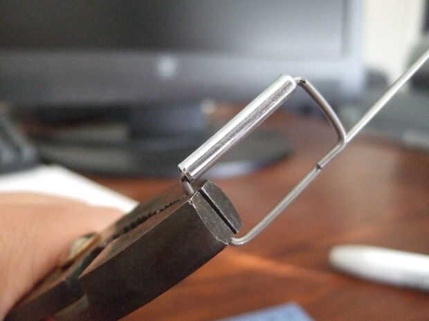 En primer lugar, retire la parte de la bandera de la bandera de marcador. Quedará con un poco de alambre. De un lado, medir ~0.25in y doblar a 90 grados, con unos alicates.