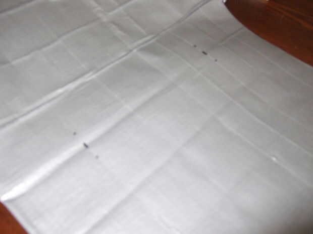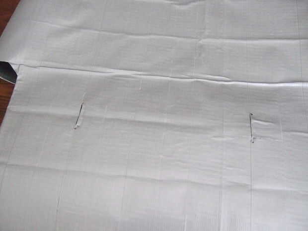 Se encuentran fácilmente debido a la estructura de la bolsa. ¿Tenga en cuenta que el panel superior tiene dos segmentos de cinta? El centro debe encontrarse fácilmente. A ambos lados, cuenta 1,5 ancho de cinta y marcar el punto en el centro.