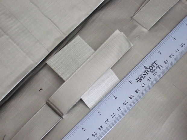 Después de cortar, cortar segmentos de 1 pulg de la cinta y cubre las costuras (fotos #3 y #4).