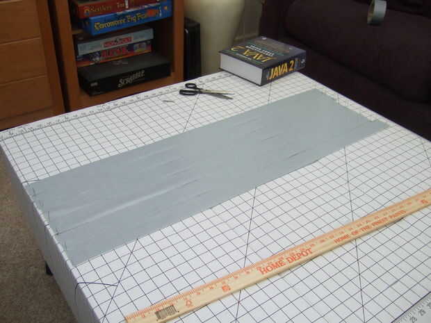 Después de que los componentes están reunidos, encontrar un espacio abierto libre de deambular de animales o niños. Extienda el tablero de tarjeta/placa de corte sobre una superficie grande y plana. Hacer útil la cinta adhesiva, alfileres y tijeras.
