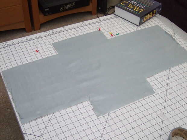 Utilizando el mismo método de fijación como en la capa 1, pin a los lados para que la parte superior de la cinta esté paralela con el centro de la última pieza de la capa 3 colocado. 4 todas las piezas que componen los paneles laterales, luego pasan el perno.