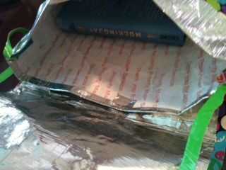 La primera manera es más simple y más fácil, pero la correa será la mitad de todo. Es el método que utiliza en la imagen. Se trata de tomar una tira de la longitud que desee (normalmente un poco más largo que el hombro al ombligo) y doblarlo en la mitad del camino largo. El segundo método consiste en tomar dos tiras de cinta del conducto la longitud que desee (normalmente un poco más largo que el hombro al ombligo) y juntarlos lado pegajoso pegajoso lado. Después de hacer la tira, recorte cualquier acceso cinta/Mostrar lado pegajoso. Tomar un extremo y cinta adhesiva en el interior superior izquierda esquina, luego la derecha (o viceversa).