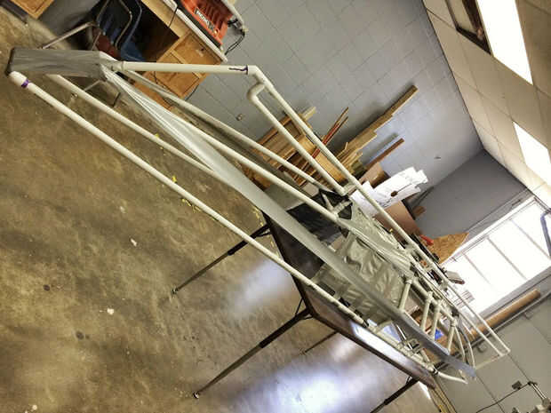 esto es un fácil de hacer hilo de swift; ninguna medición, corte o pegado necesarios. La única herramienta necesitada es alicates. Me tomó 15 minutos para armar. Los materiales (perchas, conducto de cinta y susan perezosa) son cosas que muchos de nos
