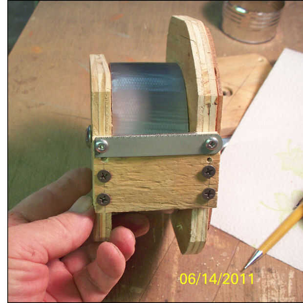 esto es un fácil de hacer hilo de swift; ninguna medición, corte o pegado necesarios. La única herramienta necesitada es alicates. Me tomó 15 minutos para armar. Los materiales (perchas, conducto de cinta y susan perezosa) son cosas que muchos de nos
