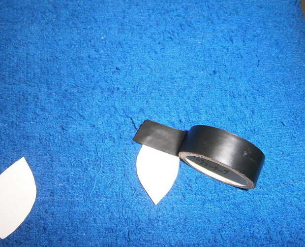 Una un lado de la cartulina colocar dos cintas del conducto negro en un ángulo.