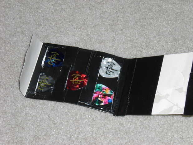 este instructable es muy útil! Que cabe en tu mochila o bolsillo y nunca perderás tus picks!Paso 1: Materiales y herramientasSe necesita...caso de goma 5 (contenido eliminado)Cinta para ductosVelcroExacto o navaja suizaSelecciones de la guitarraPaso