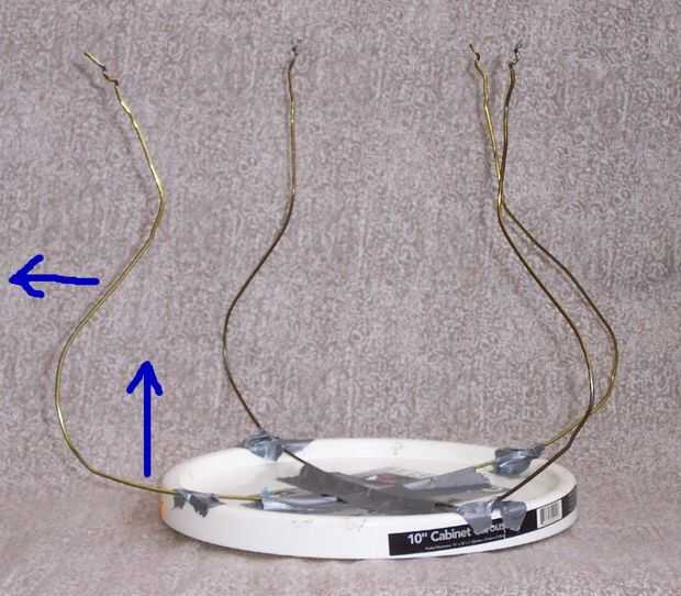 Para ajustar, tirar o doblar los alambres hacia arriba o hacia fuera como indican las flechas. Idealmente, usted querrá que los cables de extensión un poco mayor que el diámetro de la madeja. Cuando se coloca la madeja en, la elasticidad de los cables tire de ella suavemente hacia el exterior impide deslizarse hacia abajo.