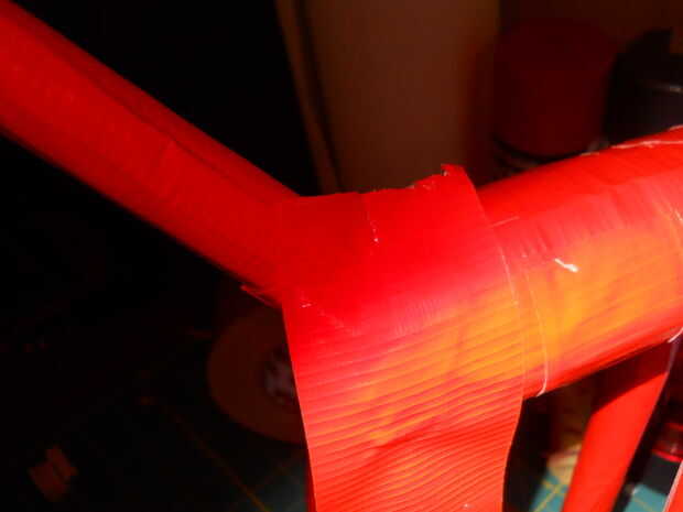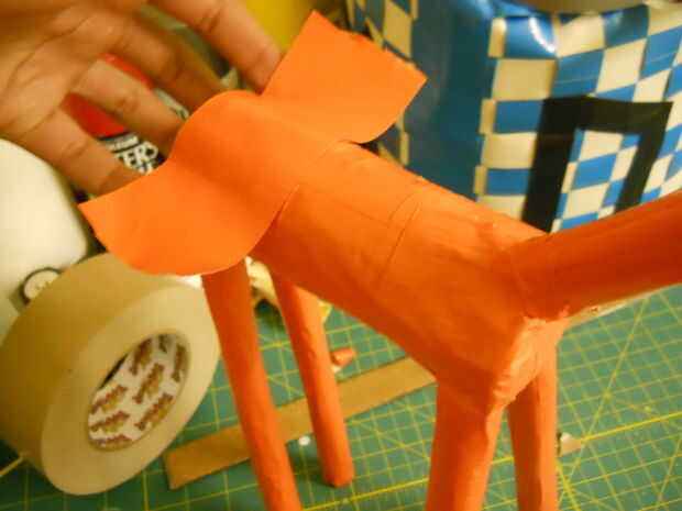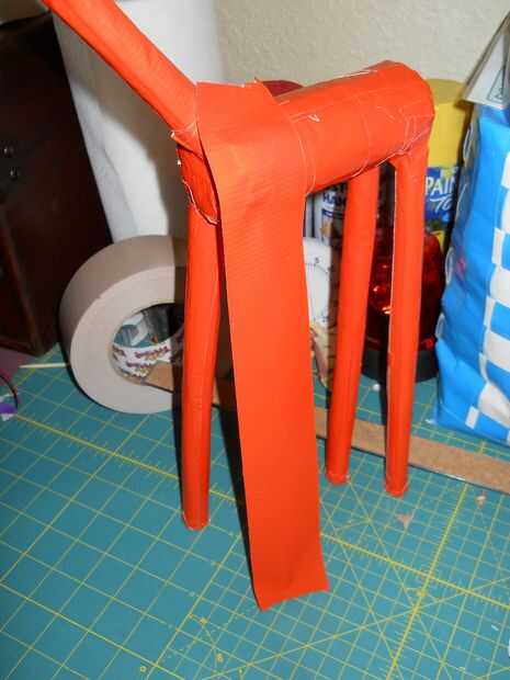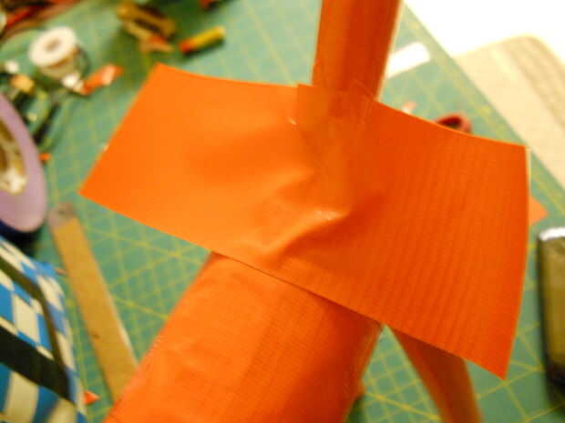 1) hacer un pedazo de cinta lo suficientemente largos para cubrir cada pierna. Asegúrese de que algunas de ellas se conecta al cuerpo y agrega estabilidad.