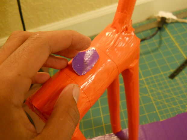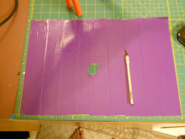 1) colocar una hoja de 16 x 12 de la segunda el papel de la cinta que tienes para las manchas. Desde el centro y cortar este rompecabezas elaborados. Tome hacia fuera pieza por pieza y comenzar a introducirlo, partir del punto central a lo más por lo que se extiende desde la parte superior y el centro del cuerpo.
