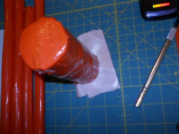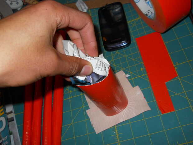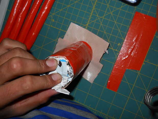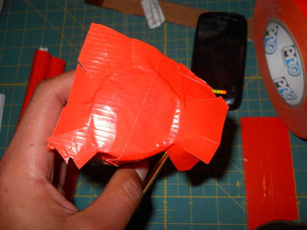 4) después de que has rellenado el cuerpo, hacer cortes en la cinta como usted fueron cortando los rayos del sol alrededor de un sol.