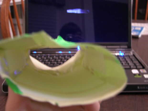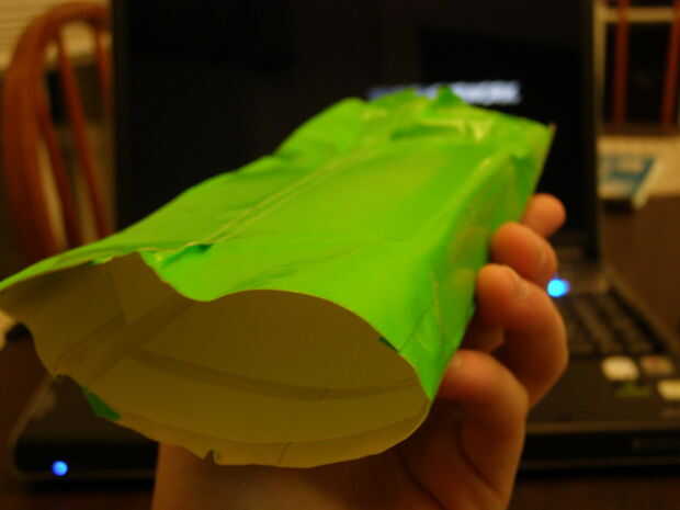 Ahora, doblar la pieza del lado externo sobre manera que toque la placa adyacente. Esto hará que la parte interior donde se guardarán las tarjetas. Presione hacia abajo la cinta las dos piezas de conexión para asegurarse de que usted tiene un buen sello.