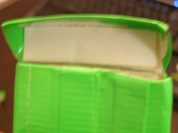 Después de que se hace, cortar una costura a la mitad de la placa así que usted puede insertar su paquete de tarjetas más fácilmente. Esta parte tendrá paciencia, así que tenga en cuenta uno de los refranes favoritos de rojo verde - "si fuerza no funciona, no está usando suficiente." En serio, es muy difícil de "romper" un paquete de tarjetas. No tenga miedo de empujar. Poner una tira de cinta adhesiva sobre la abertura una vez que se. Si usted está preocupado en absoluto sobre el paquete que se pega en el interior, espolvorear talco en allí para cubrir el pegamento que todavía desnudo. Tus cartas deben deslizarse dentro y fuera más fácil, también.