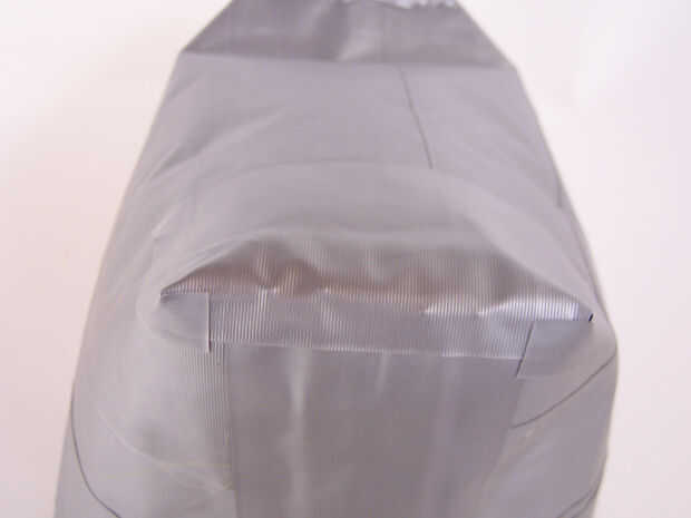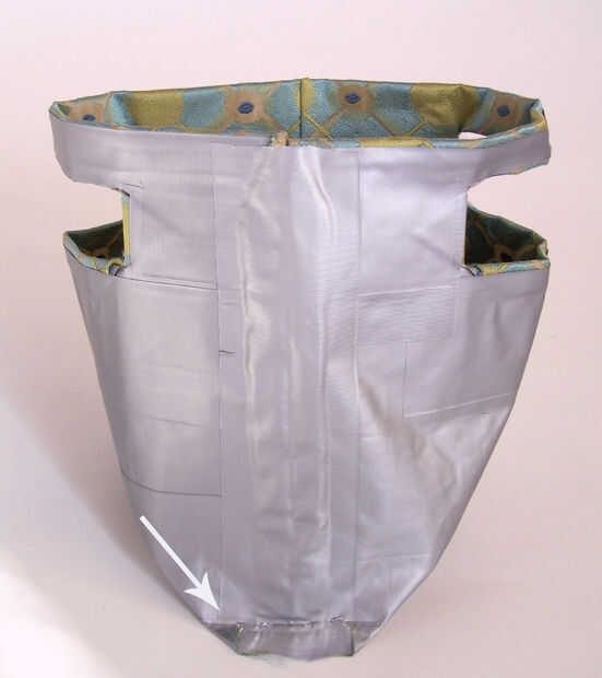 • Doblar el margen de costura hacia la parte inferior de la bolsa y la tapa con cinta adhesiva.