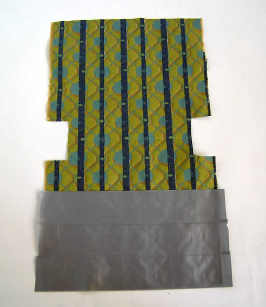 • Empezar al revés (interior) de la tela, traslapando ligeramente cada de tiras de capas de cinta adhesiva.