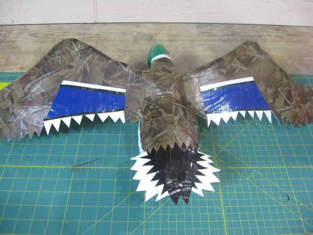 Más colores cinta fue utilizado para agregar los datos a la parte posterior de las alas. La cinta negra es realmente gorila cinta.