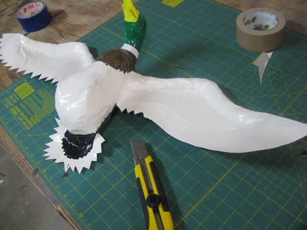 Después se agregaron todos los detalles, las formas de plumas en las alas fueron cortadas con un cuchillo.
