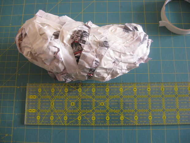 Comenzar apenas guata de periódico y envolver cinta alrededor de ella. Puede moldearlo en la forma que usted quiera morder y meter el taco de papel juntos y poniendo más trozos de cinta en lugar.