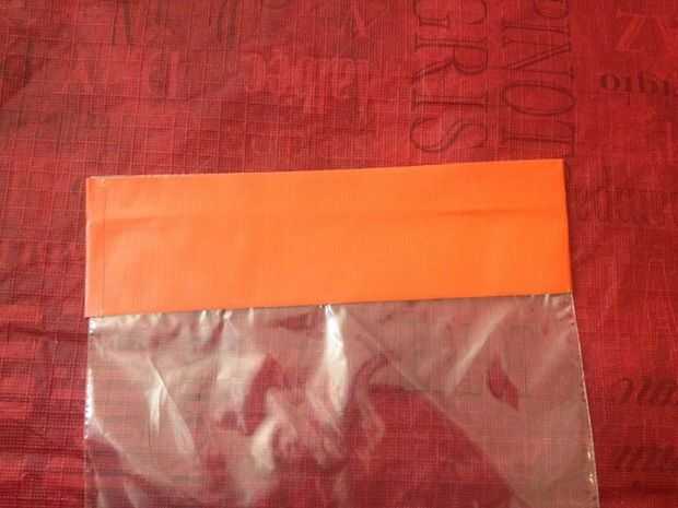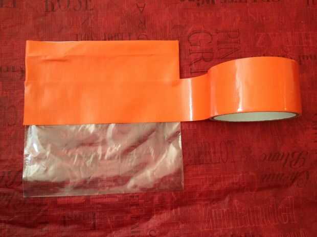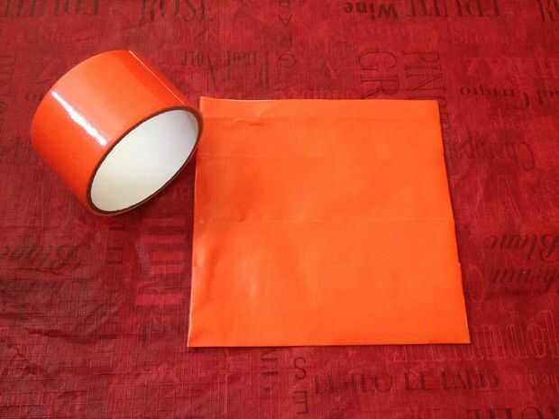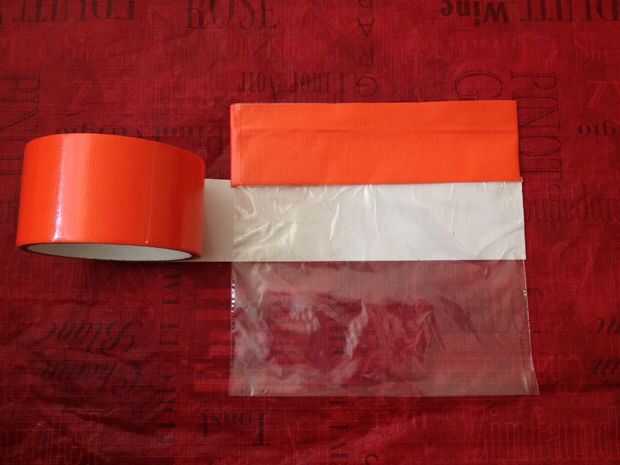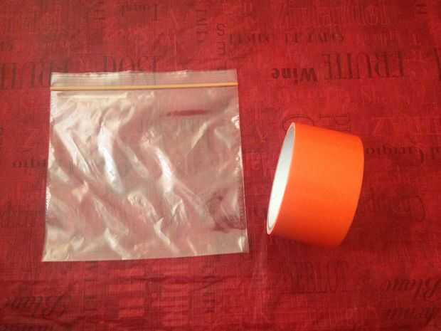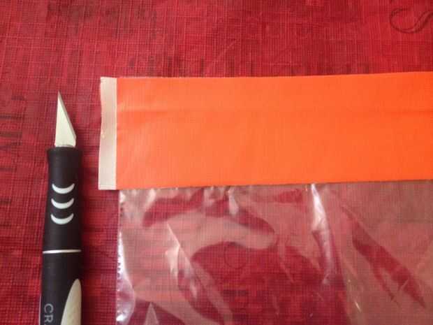 Corte una tira de cinta exactamente tan largo como el ancho de la bolsa.