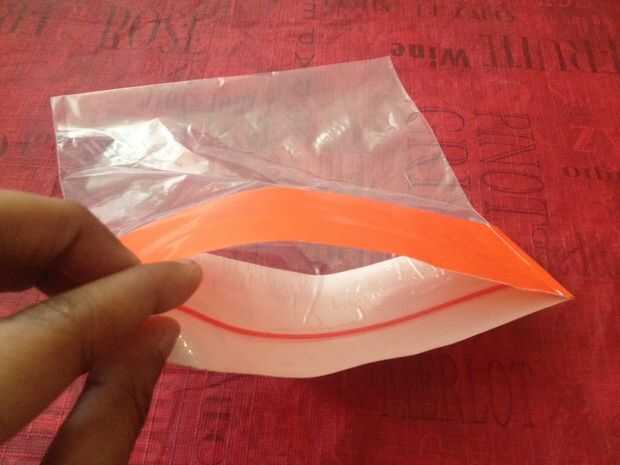 Tomar la cinta naranja y cremallera bolso de la cerradura.