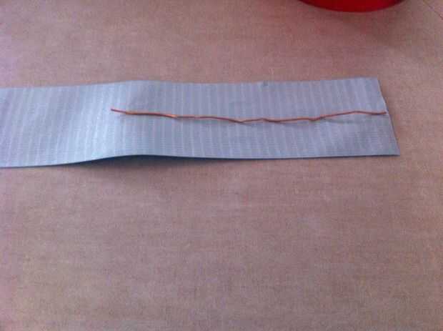 Luego colocar alambre en el centro de la cinta, doble la cinta de pato sobre alambre entonces cortar el extremo