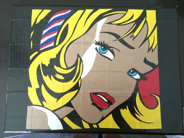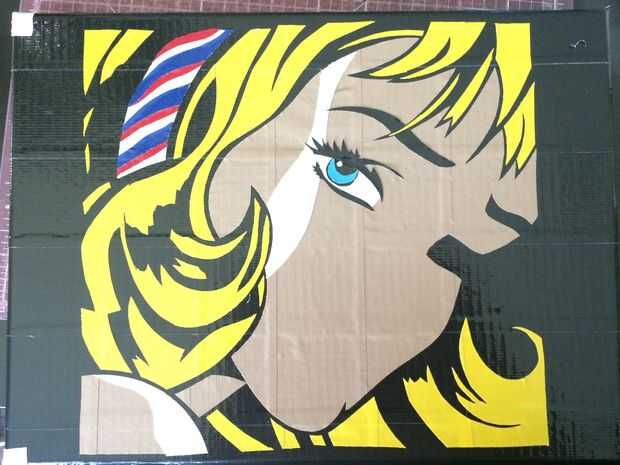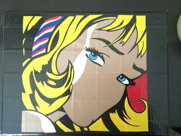 Después de terminar el pelo, empecé a cortar los rasgos faciales. Este es el paso más difícil. Tenga mucho cuidado al cortar estos diseños porque son pequeños. Al crear estos, utilicé la técnica de estratificación, que me permitió hacer los ojos y la boca. Para los ojos, usé cinta aislante eléctrica de azul, blanco y negro. Para la boca, usé cinta aislante blanco, negro y rojo. Para la nariz y las cejas usé cinta aislante negra.
