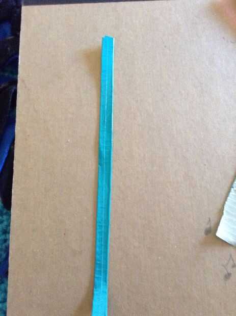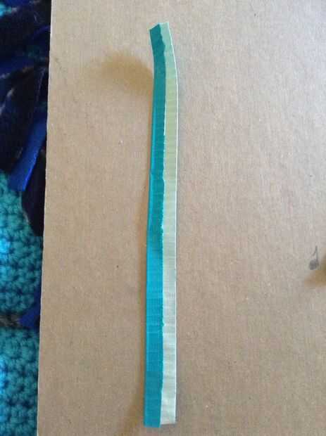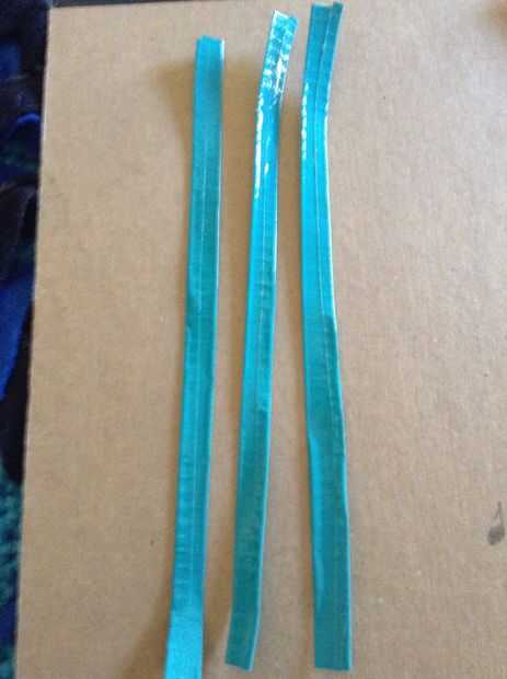 Doblar los bordes de cada tira en el centro, traslapando ligeramente por lo que no se expone viscosidad. Trate de mantener la cinta lisa. Debe tener 3 tiras flacas cuando termines. :)