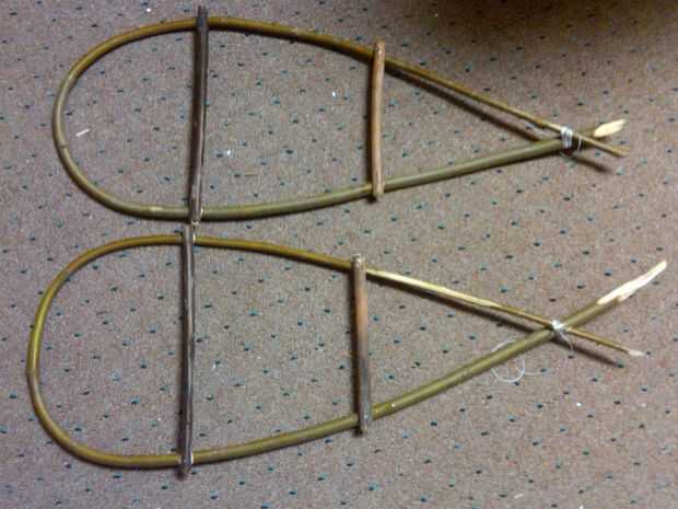 Las siguientes imágenes muestran lo que sería el esqueleto de las raquetas de nieve al completar este paso del proyecto, así como un ejemplo de una llave se aplica a la parte superior del cuerpo con raquetas de nieve.
