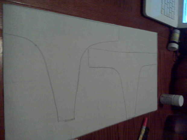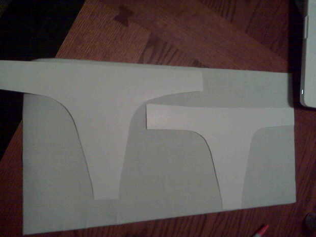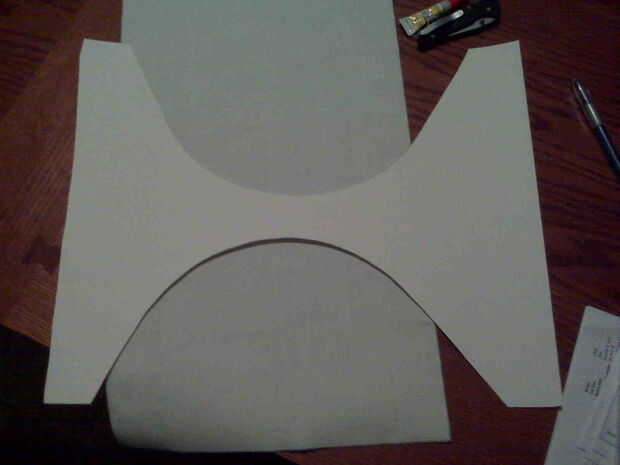 una vez que lo tenía todo bien y sin problemas con cinta recortado para ser todos los bordes rectos. hice una plantilla de cartulina para los agujeros de la pierna un plato y la mitad del círculo. corte que hacia fuera y vaya a un área privada y probar a ver lo cómodo es. Usted probablemente tendrá que recortar las esquinas alrededor de las piernas para que usted no obtiene poked