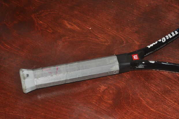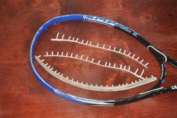 Primeras cosas en primer lugar, adquieran una vieja raqueta de tenis. Asegúrese de que la estructura está intacta, porque eso es lo único que te importa. Que y asegúrese de que el marco tiene poco pequeños agujeros. A continuación, tienes que desarmar tu raqueta. La empuñadura estaba cayendo fuera de mi raqueta, por lo que había pelado. Luego, utiliza un cuchillo cuchillo y corta todas las cuerdas. Por último, pelado estas cosas que había enchufado en los agujeros pequeños y ayudó a sostener las cuerdas. Cuando terminé, me quedé con sólo el marco. Eso es todo lo que necesita, también.