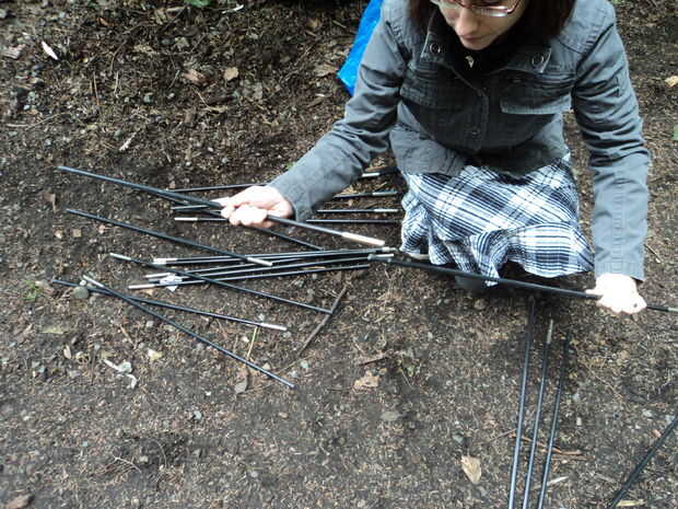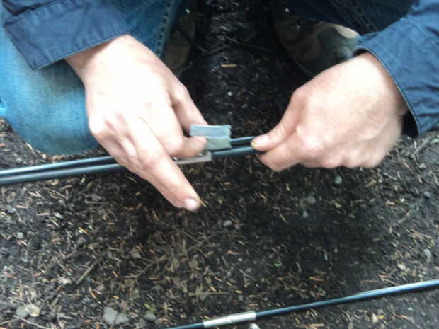 esto es un fácil de hacer hilo de swift; ninguna medición, corte o pegado necesarios. La única herramienta necesitada es alicates. Me tomó 15 minutos para armar. Los materiales (perchas, conducto de cinta y susan perezosa) son cosas que muchos de nos