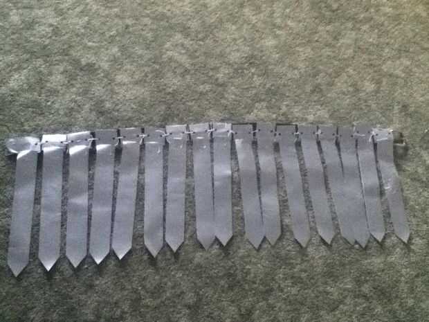 Por último, tienes que fijar al cinturón por medio de cinta adhesiva en cada uno (o todos los demás) tira corta. Ajustarlos para ajustarse el cinturón (uno sacar o agregar algunos.)