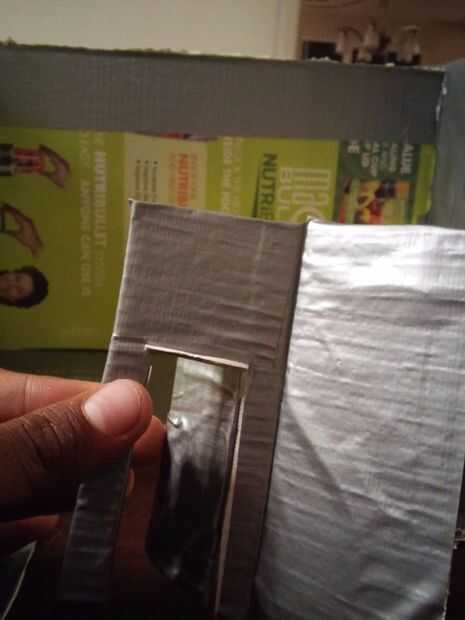 Que la puerta sólo cubra un pedazo de cinta una y otra vez y luego cinta adhesiva a la estructura que hemos construido.
