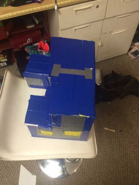 A continuación trazar la parte superior de la casa y ponerlo encima de la casa. Conducto de cinta de un solo lado. Así que usted puede hacer una tapa.