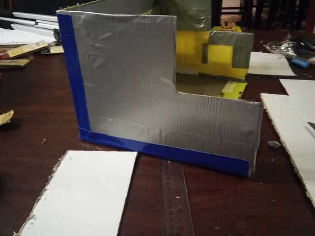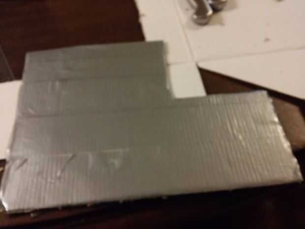 A continuación tenemos que hacer la siguiente pared en el otro lado. Recuerde que es un poco más larga que la otra pared. Conducto de cinta adhesiva a la pared posterior y la base.