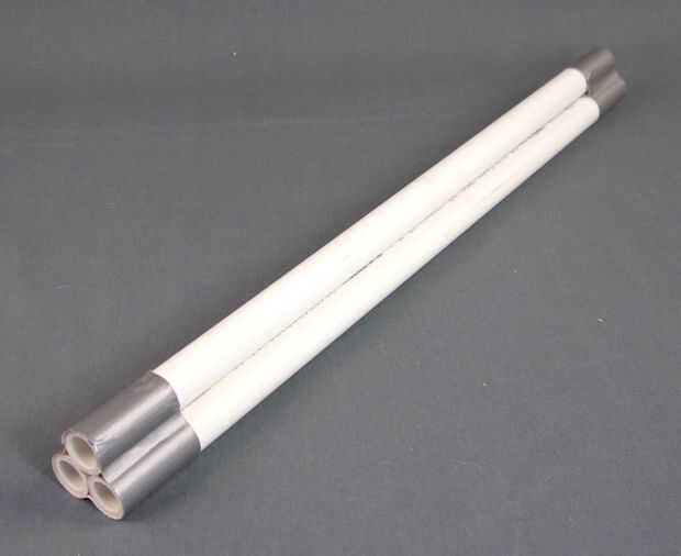 1. Paquete de tres 20" piezas de PVC, luego enrollar los extremos de la cinta del conducto.
