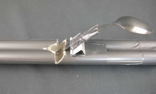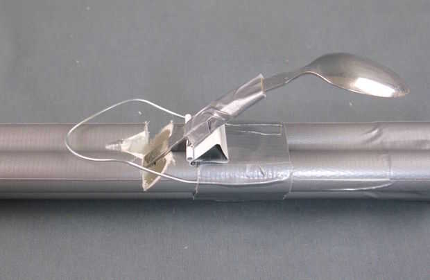 esto es un fácil de hacer hilo de swift; ninguna medición, corte o pegado necesarios. La única herramienta necesitada es alicates. Me tomó 15 minutos para armar. Los materiales (perchas, conducto de cinta y susan perezosa) son cosas que muchos de nos