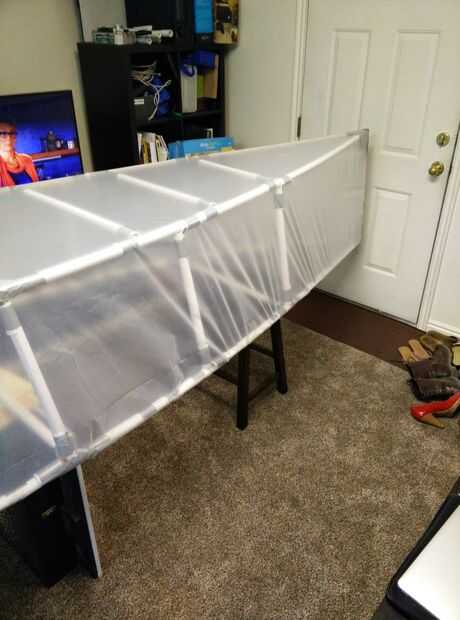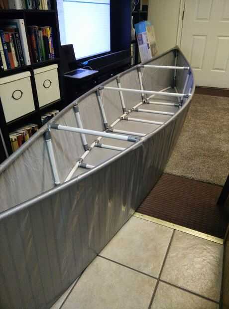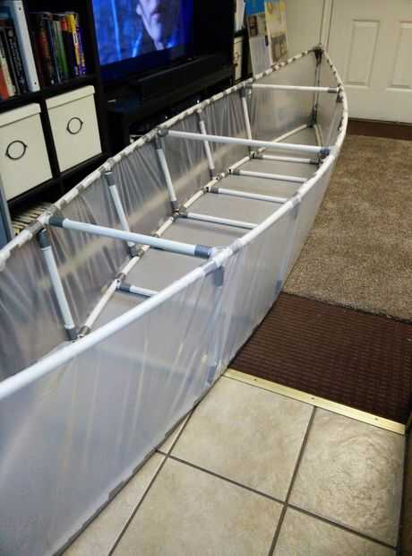 Compré pintores plástico para hacerla a prueba de agua, ya que no confío en la cinta para hacer el trabajo, especialmente una vez que se mojó. Vaya el 25 'x 10' pieza he comprado seguro que yo podría envolver la canoa todo en uno, no dejando espacios si hay fugas. Había trazado en el suelo, prendió la canoa y corte/grabado para que quepa.