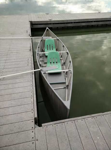 Sacó al lago Utah para probar y funcionó como un sueño! Mi esposa y yo fueron capaces de conseguir en y remar alrededor de ningún problema. Sólo se sentó unos 6" en el agua, y desde entonces fue unos 2' alto en el medio (y más altos en los extremos, como sería una canoa normal) no estábamos en peligro de mojarse.