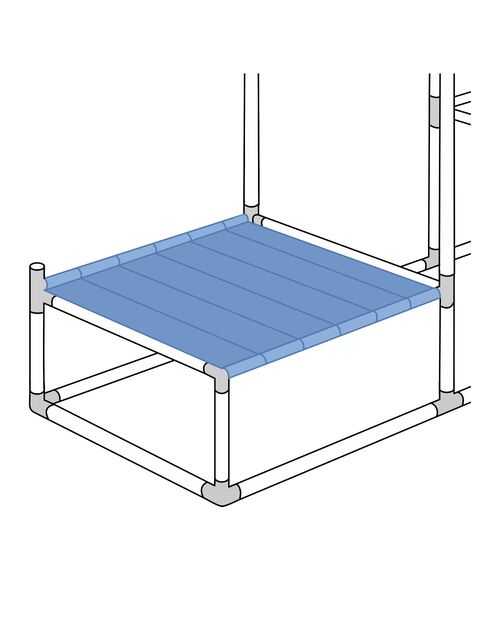 Crear la plataforma sí mismo envolviendo firmemente superponen capas de cinta adhesiva alrededor del tubo como se muestra, similar a una hoja de cinta de conducto. Asegúrese de que la plataforma está por debajo de la parte superior del borde de la pipa del PVC circundante. Esto permite que el tubo formar una barrera corta, para evitar cojines o mantas de desplazamiento fuera de la plataforma. Repita en los otros tres 14 x 14" plataforma Marcos.